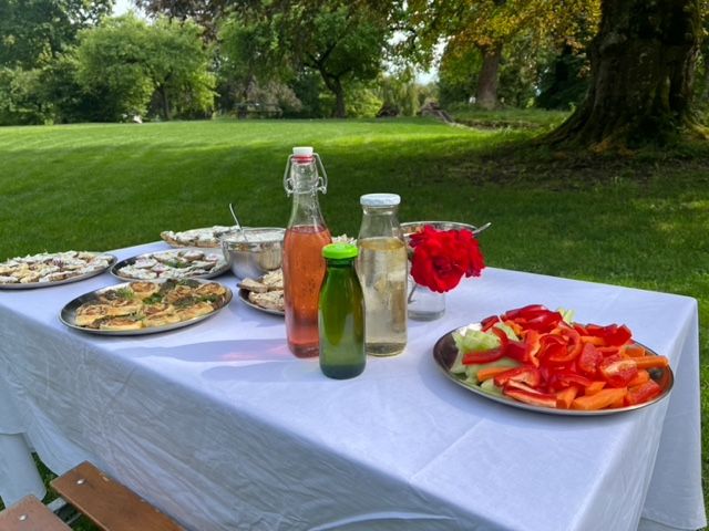 Nach der Führung, die bei Bedarf verkürzt werden kann, haben Sie die Möglichkeit, ein Wildkräuter-Picknick zu buchen. Dabei werden gemeinsam gesammelte Wildkräuter verarbeitet und zu einer einfachen Mahlzeit zubereitet. Dieses Picknick kann entweder auf einem Picknickplatz im Schacky-Park mit malerischem Seeblick stattfinden oder Sie haben die Möglichkeit, das Entenhaus oder das Teehaus zu mieten. Diese außergewöhnlichen Kulissen sorgen für ein unvergessliches Naturerlebnis.